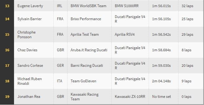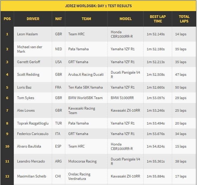 Sementara itu juara dunia WorldSBK musim 2019 yaitu Jonathan Rea belum ambil bagian di hari pertama ini. So berikut hasil lengkap dari sesi sesi Test Pra musim WorldSBK yang berlangsung di sirkuit Jerez (22/01).
