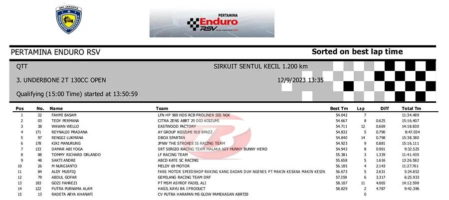 Rubahan Set-up juga sempat dilakukan oleh AB Bendol sehingga saat sesi kualifikasi Fahmi Basam bisa tampil lebih gacor lagi. Mekanik asal Salatiga ini juga mengantarkan Tedy Permana di posisi kedua tercepat dengan Underbone Citra Farma Zeus.