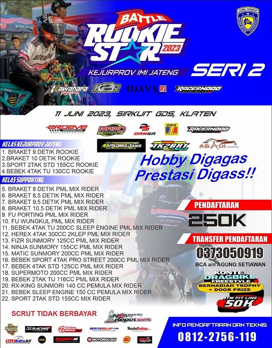 Ajang yang digelar untuk mewadahi serta mencari bibit pembalap baru yang bertalenta ini akan menyuguhkan pertarungan seru rookie terbaik di Jawa Tengah dan sekitarnya.