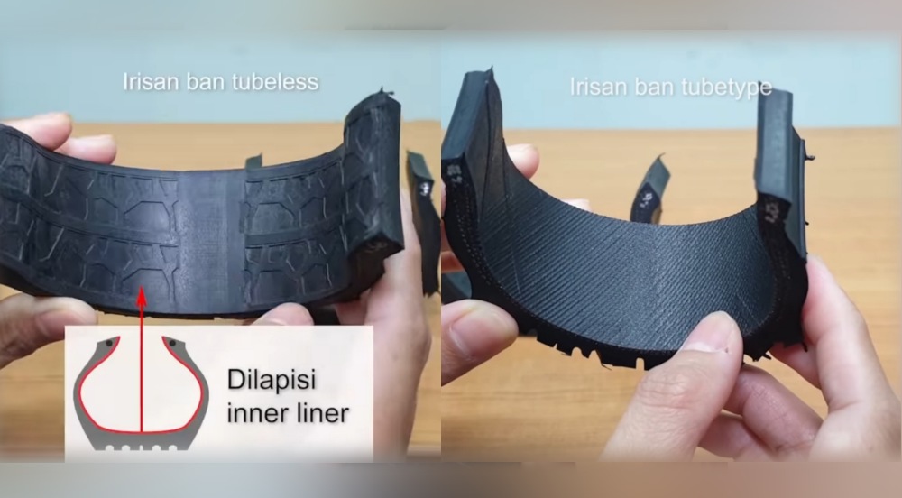 Ban tubeless ini dalam dinding ban akan timbul tulisan tubeless. Material ban tubeless bagian dalamnya akan dilapisi oleh inner liner yang berfungsi sebagai penganti ban dalam. Jadi lebih praktis ya gaes.
