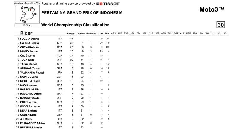 Berikut Klasemen Sementara MotoGP, Moto2 dan Moto3: