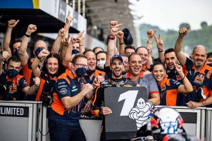 BalapMotor.Net – Dalam putaran kedua MotoGP yang berlangsung di sirkuit Mandalika, Indonesia Miguel Oliveira keluar sebagai juara. Pembalap asal Portugal itu tampil dengan spartan dalam kondisi lintasan basah.