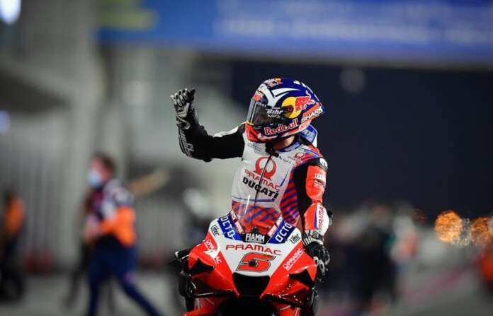 Bagi Johann Zarco, posisi kedua pada balapan MotoGP kedua hari ini di Doha terasa seperti kemenangan. Itu adalah tempat kedelapannya di podium di kelas pemier. “Saya menempati posisi kedua dan naik podium untuk kedua kalinya. Saya senang dan sekarang bahkan memimpin di Piala Dunia,” ungkap pembalap Pramac Ducati itu.