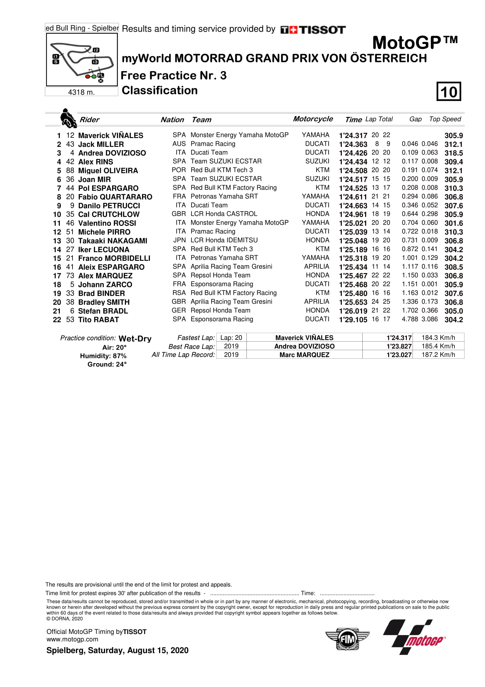 Juara MotoGP Ceko, Brad Binder yang merupakan rekan setim dari Pol Espargaro di Red Bull KTM Factory Racing juga harus gagal masuk Q2 karena pada sesi FP3 hanya di posisi ke-19.