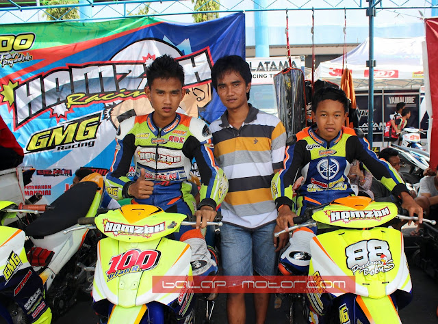 BalapMotor.net –  Mengangkat nama suatu daerah mungkin ada banyak caranya, salah satunya dengan mengangkat nama daerah dengan balap motor. Itulah yang dilakukan Hamzah Wisnu Spring GMG Racing team. Tim yang berdiri sekitar tahun 2007an di daerah Kebumen ini awalnya mengandalkan pembalap Faozan yang notabene pemilik dari tim ini, namun sejak 2010 Faozan mundur dan digantikan adiknya sendiri yang kini namanya sudah lumayan bersinar yaitu Irvan Riyadoh. Tahun ini Irvan Riyadohmengikuti berbagai kejuaraan balap motor baik kejurnas maupun event lokalan, namun buat kejurnas belum full ikut semua seri.