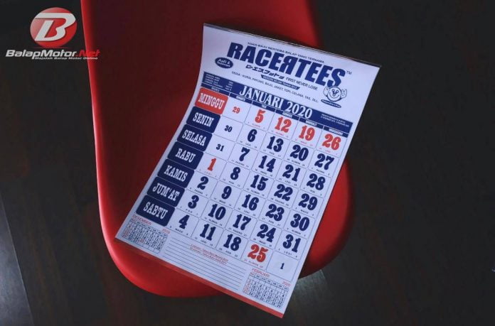 Nah, brand apparel balap asal kota Solo yaitu Racertees sudah menyiapkan nih gaes kalender untuk tahun 2020. Tidak hanya ada tanggal, bulan serta hari libur saja, kalender dari Racertees lengkap dengan penanggalan hijriah dan jawa.