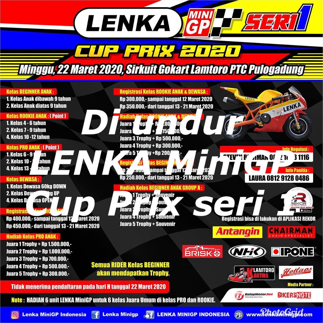 Kembali membahas mengenai diundurnya gelaran LENKA MiniGP Cup Prix 2020 putaran perdana, Setiawan Tjendraputra selaku owner LENKA MiniGP mengatakan bahwa kemungkinan gelaran ini akan ditunda sampai habis lebaran.
