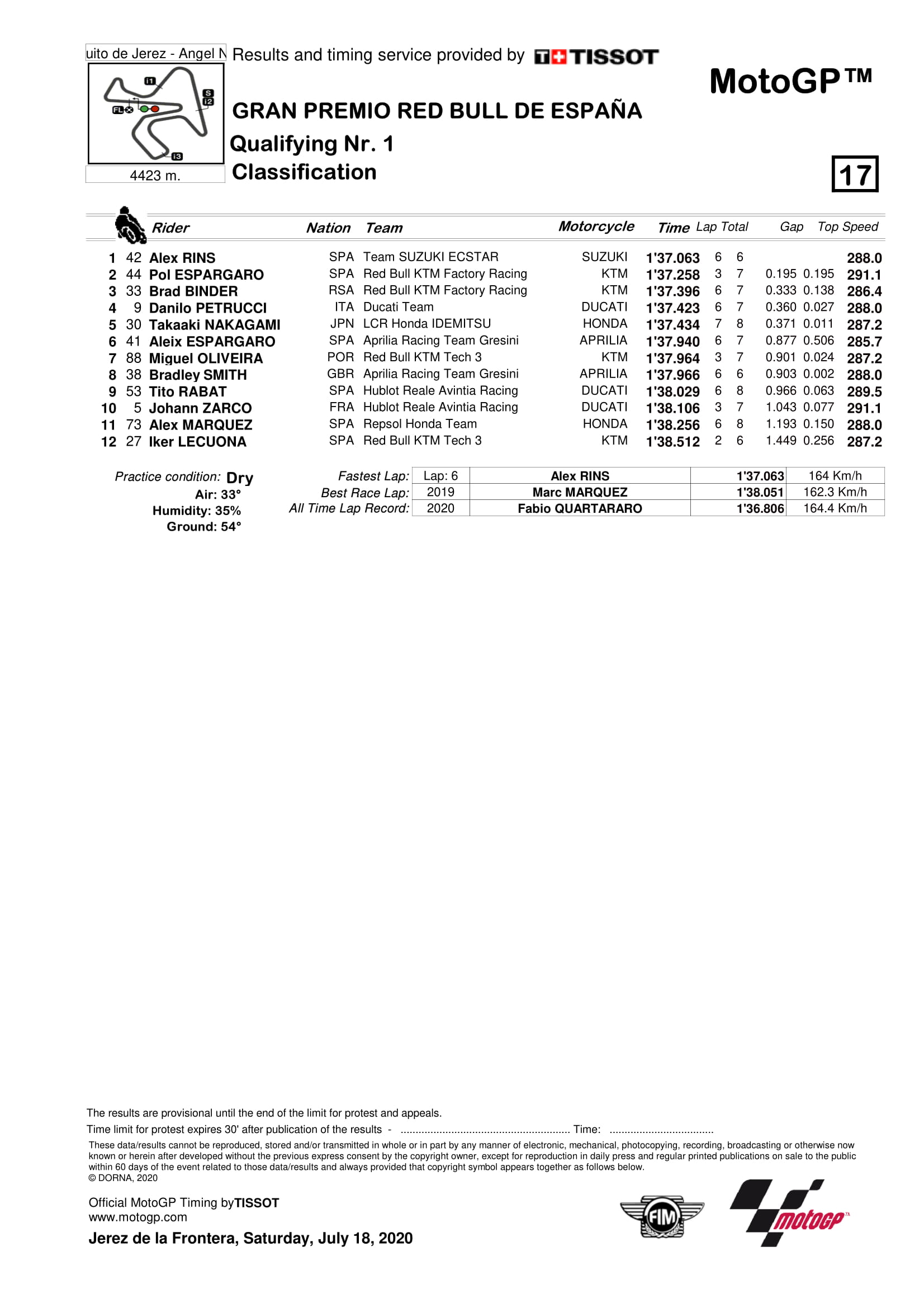 Sementara itu, sang juara dunia bertahan Marc Marquez berhasil menduduki posisi ketiga tercepat. Pembalap Repsol Honda ini mencetak best time 1 menit 36.862 detik. Marquez sendiri pada sesi FP3 mengalami insiden dengan ALex Rins.