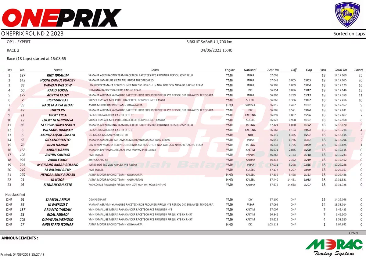 Baca Juga : Hasil Race 2 Oneprix Palangkaraya 2023