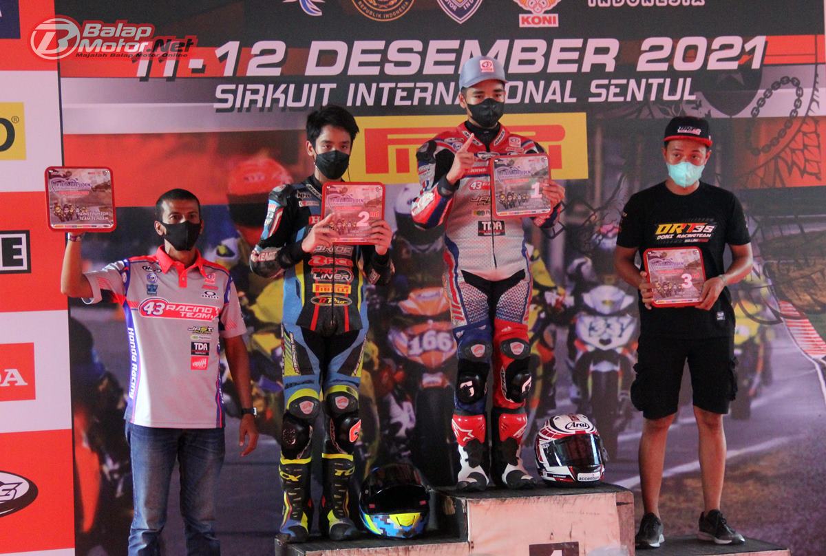 BalapMotor.Net – Start dari grid ke-11, Reykat Yusuf Fadillah berhasil memenangkan jalannya race 1 kelas Rookie (MP3) Piala Presiden IMI Kejurnas Balap Motor 2021 yang berlangsung di sirkuit Sentul Internasional, Bogor siang tadi (11/12).