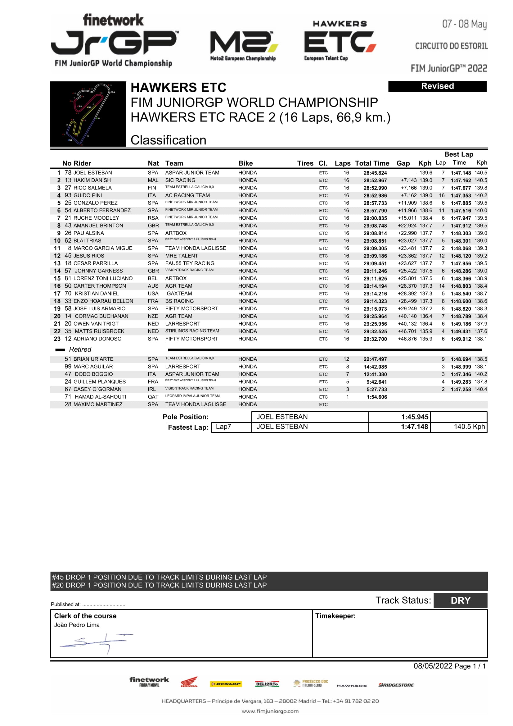 Apalagi selain Buasri ada satu pembalap Malaysia yaitu Hakim Danish yang berhasil menapaki podium kedua pada kelas Hawkers European Talent Cup (HETC). Sayangnya, rider Indonesia Fadillah Arbi Aditama hanya finis ke-17. Sepertinya Arbi masih harus banyak belajar lagi mengingat ini merupakan debut perdananya balap di JuniorGP.