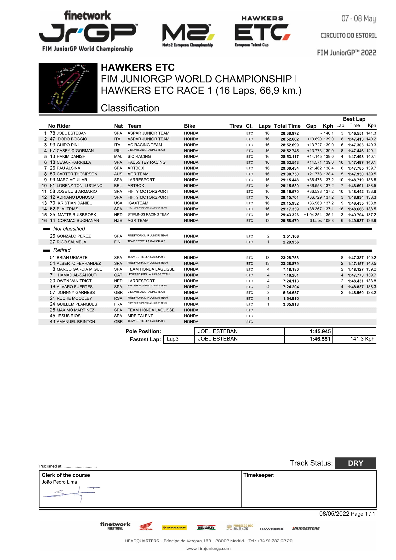 Apalagi selain Buasri ada satu pembalap Malaysia yaitu Hakim Danish yang berhasil menapaki podium kedua pada kelas Hawkers European Talent Cup (HETC). Sayangnya, rider Indonesia Fadillah Arbi Aditama hanya finis ke-17. Sepertinya Arbi masih harus banyak belajar lagi mengingat ini merupakan debut perdananya balap di JuniorGP.