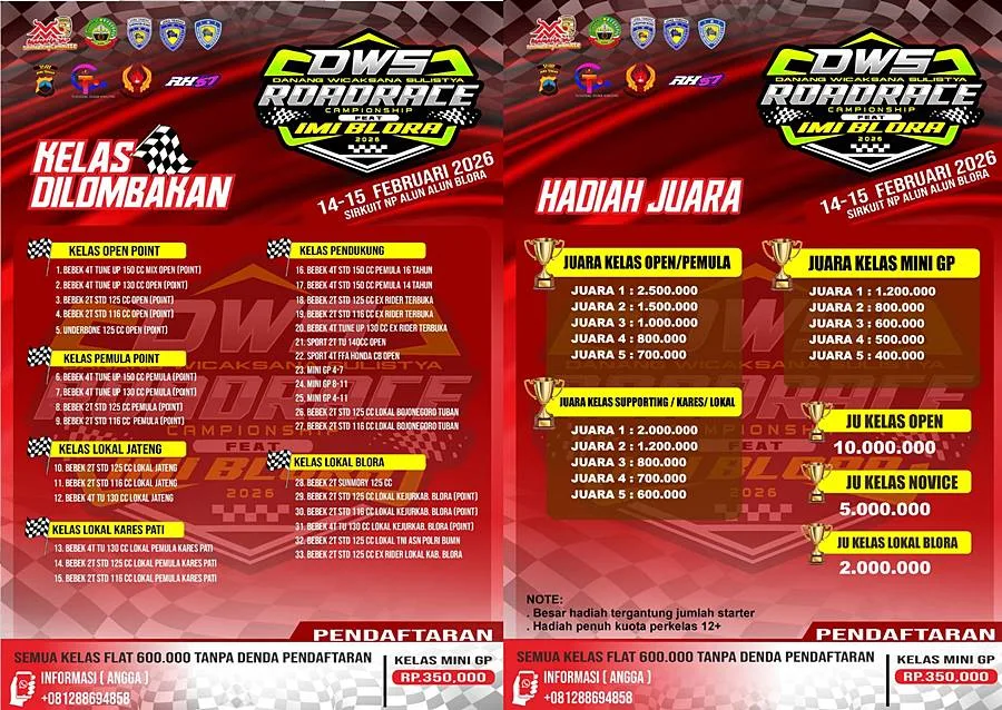 BalapMotor.Net – Kejuaraan balap motor DWS Ft IMI Blora Road Race yang akan berlangsung akhir pekan ini dipastikan siap menyuguhkan pertarungan yang seru dan menarik.