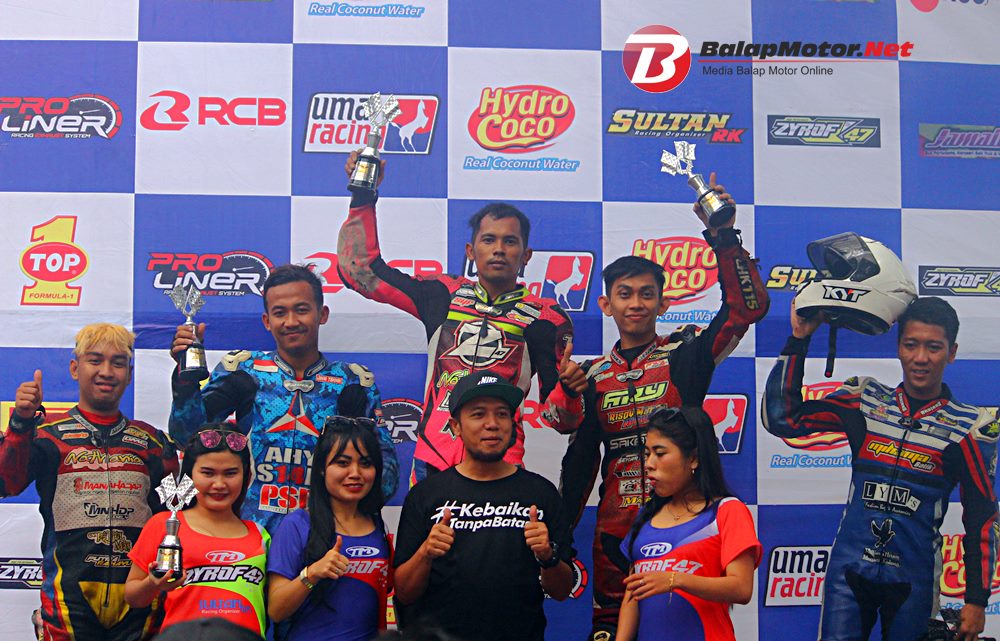 Dalam kondisi trek basah, Aam melesat terdepan. Namun pada lap-lap akhir posisi nya merosot keurutan tiga. Sofyan dengan risetan terbaru bebek goreng racikan Juns80 pun akhirnya melintasi garis finis terdepan.