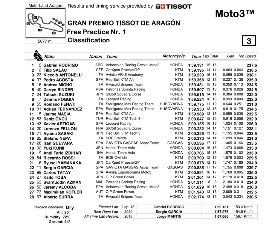 Hasil FP1 Moto3 Aragon 2021: