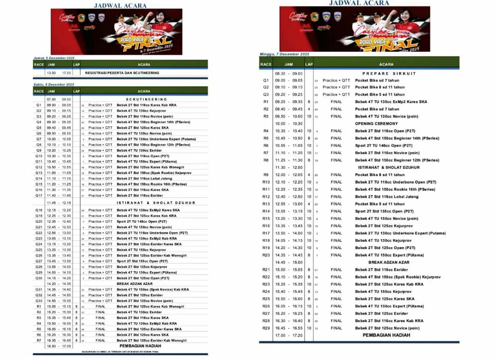 BalapMotor.Net – Putaran final kejuaraan Casytha Manahadap Road Race 2025 akan berlan di sirkuit NP. Alun-alun Karanganyar, Jawa Tengah akhir pekan ini (6-7 Desember).