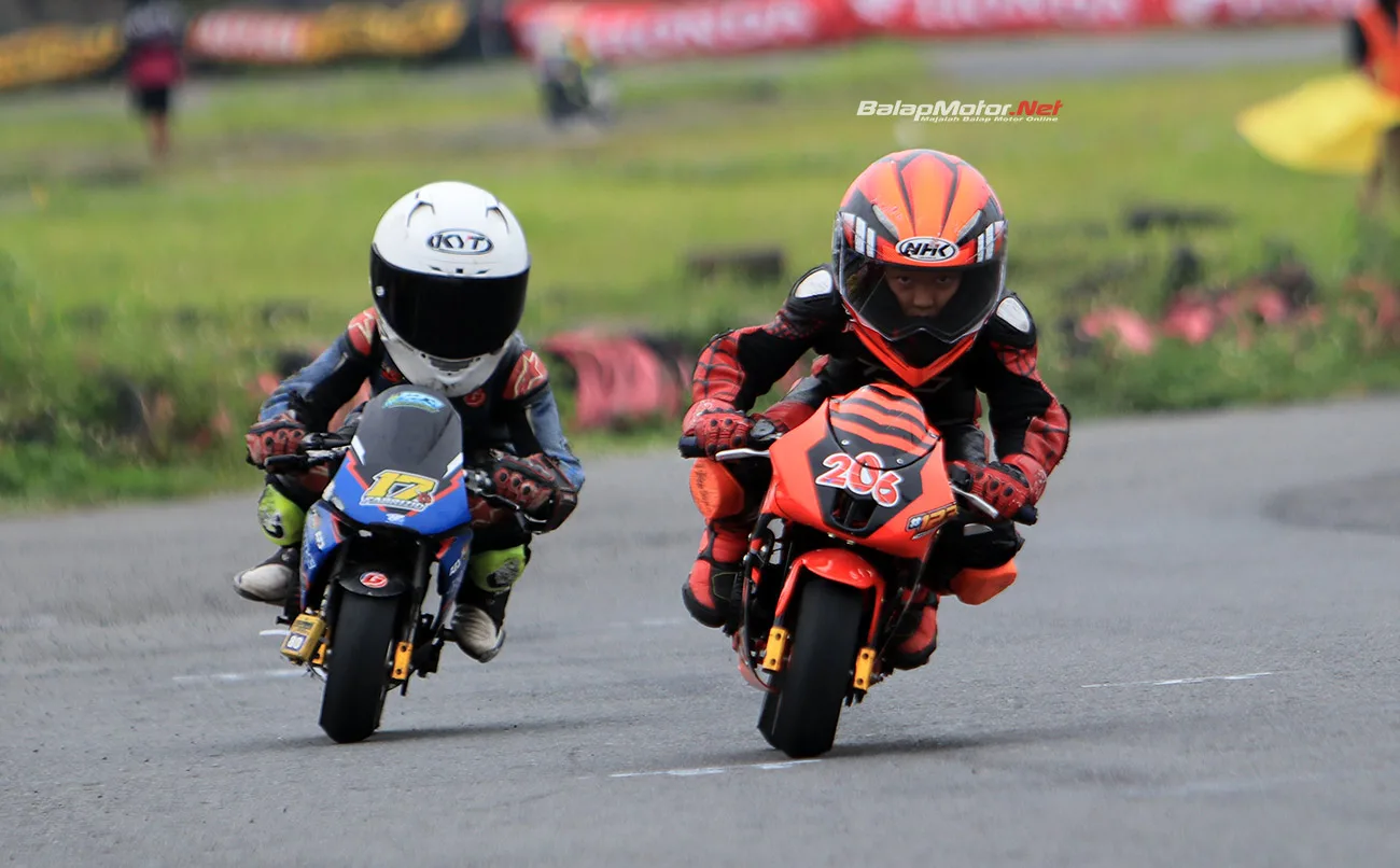 Namun perjuangan Arfan belum berhenti di situ. Ia juga turun di kelas MiniGP 8-11 tahun dan sempat memimpin pertarungan sengit di barisan depan. Sayangnya, motor pacuannya mengalami kendala teknis saat keluar dari tikungan R1. Meski sempat tertinggal, Arfan tak menyerah dan tetap mampu finis di posisi kedua — hasil yang tetap menunjukkan semangat pantang menyerah sang Spider Kids.