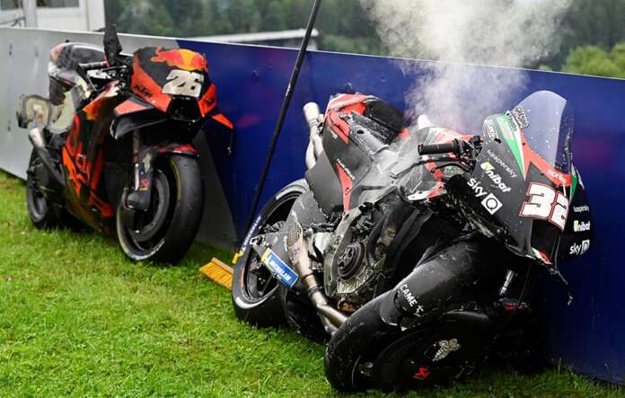 BalapMotor.Net – Insiden terjadi pada lap ketiga GP Styrian yang berlangsung di sirkuit Red Bull Ring, Minggu 8 Agustus kemarin. Dani Pedrosa jatuh di tikungan ketiga, Lorenzo Savadori bertabrakan dengan KTM RC-16 yang tergeletak di lintasan dan terbang.