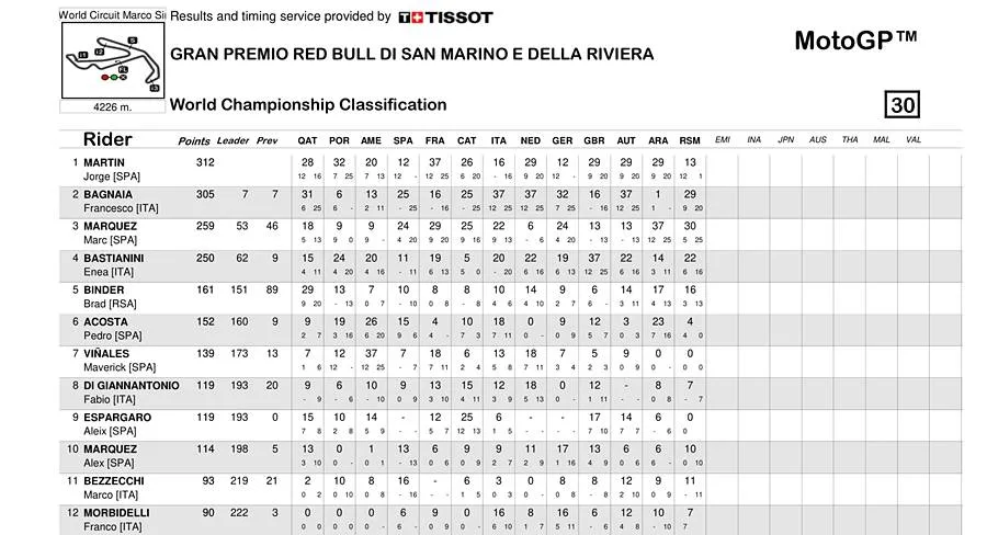 BalapMotor.Net  – Enea Bastianini tampil bagus pada Grand Prix Misano pekan lalu. Podium kembali ia dapatkan. Sekarang pembalap Italia itu telah mengumpulkan 250 poin, tertinggal 62 poin dari Jorge Martin (Pramac Ducati).