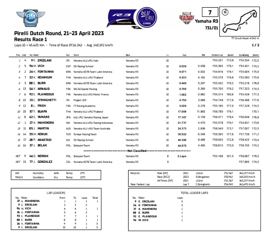 Akan tetapi ia mampu bangkit dan melanjutkan balapan lagi. Hasil akhir, pembalap Yamaha bLU cRU Racing Indonesia itu finis di posisi ke-12 dan mengamankan 4 poin pertama di kejuaraan Eropa.