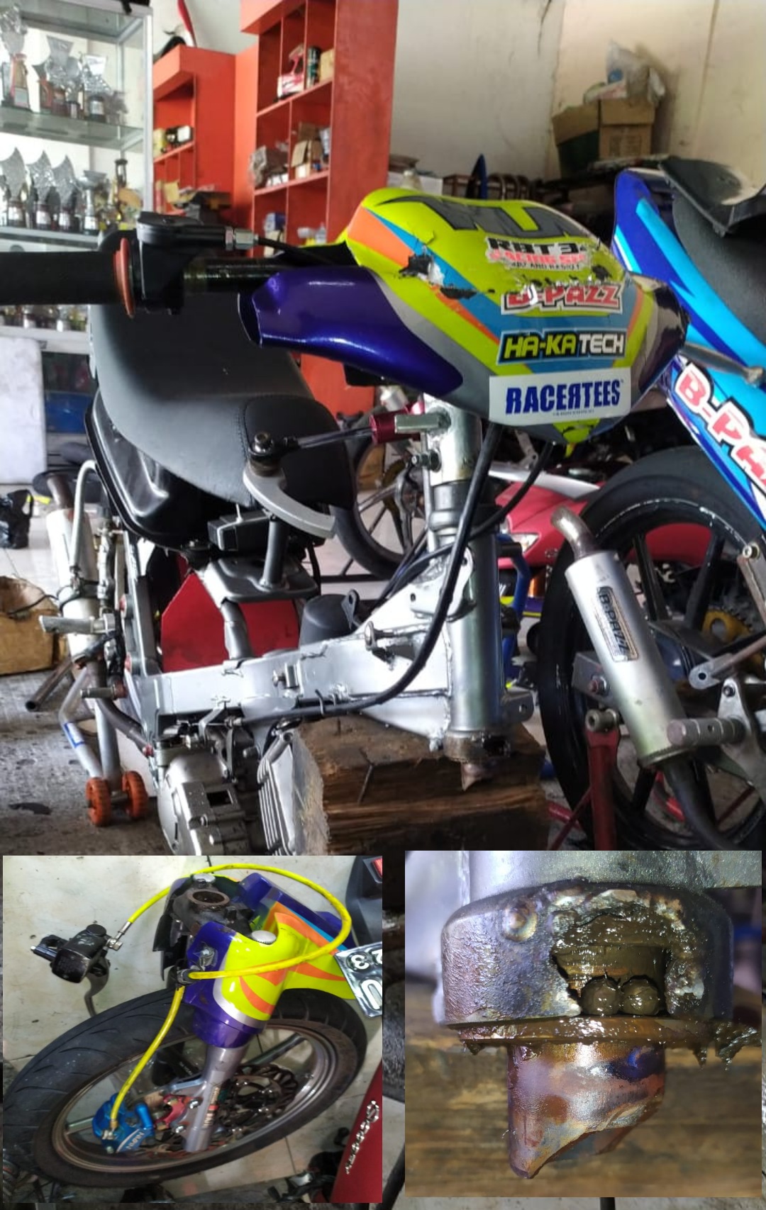 Ketika ditelisik, motor racikan Thoriq Cendana yang sudah langganan merajai kelas Underbone di wilayah Jateng ini katanya bisa patah karena bekas las lama yang retak akan tetapi tidak ketahuan.
