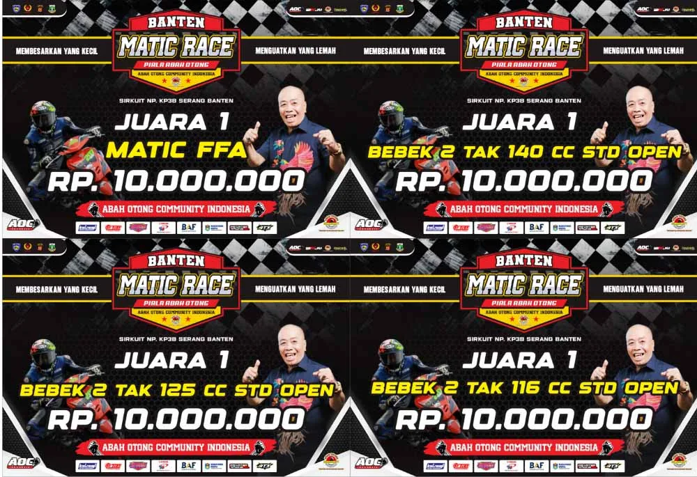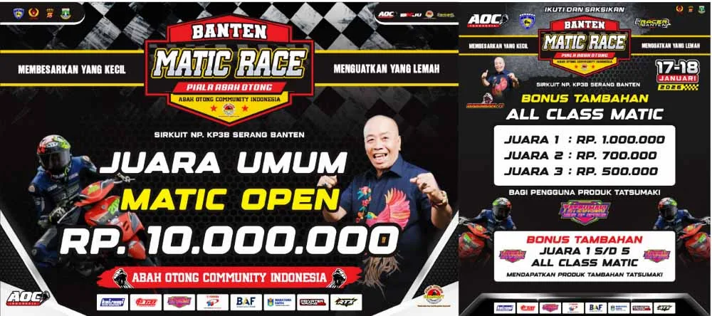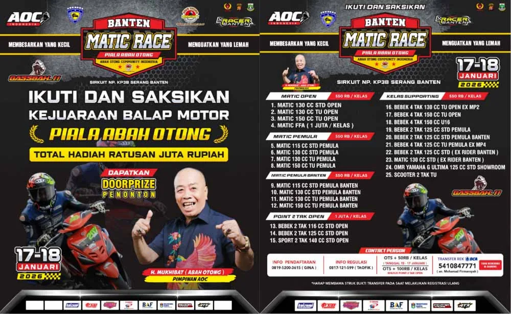 BalapMotor.Net – Awal tahun 2026 langsung gaspol nih. Tepatnya akan tersaji kejuaraan Banten Matic Race yang memperebutkan Piala Abah Otong di sirkuit KP3B Serang.