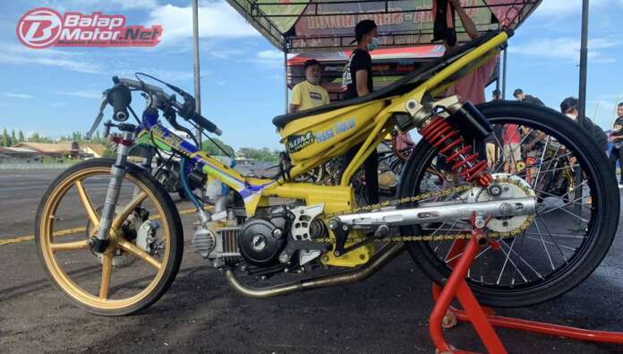 BalapMotor.Net – Yamaha Jupiter spek bebek 200cc Sleep Engine milik Aneka Jaya Variasi dari Bima, Nusa Tenggara Barat (NTB) bikin kejutan dalam kejuaraan ZOC Drag Bike 2021 yang berlangsung di Lanud Selaparang, Mataram, NTB pada 30-31 Oktober 2021.