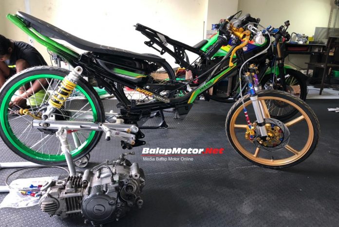 “Iya mas, kita sedang proses bikin bebek 200 sleep engine. Kelas ini sekarang cukup ramai, rangka pun sudah siap dan tinggal nunggu mesin,” ungkap empunya tim.
