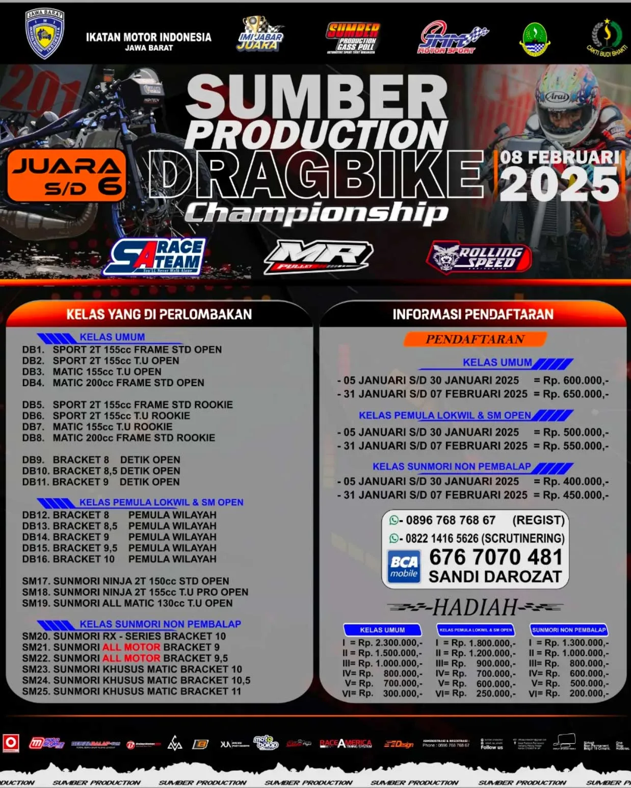 Untuk informasi mengenai gelaran Sumber Production Drag Bike Championship 2025, silahkan cek flyer dibawah ini. (**)