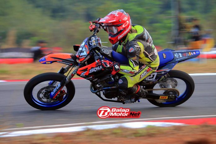 Pembalap yang diusung tim 64 Squad itu gak butuh waktu lama dalam beradaptasi. Walaupun perdana main Supermoto, namun Rere membuktikan kualitasnya. Yup! Catatan wakktu terbaik di kelas poin utama.