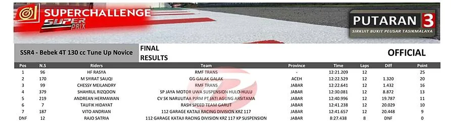Hasil Race Bebek 4T TU 130cc Novice: