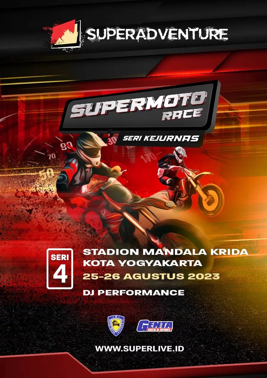 BalapMotor.Net – Setelah melewati tiga provinsi, kejuaraan spektakuler Superadventure Kejurnas Supermoto Race akan memasuki putaran keempat yang akan digelar di Yogyakarta (25-26 Agustus).