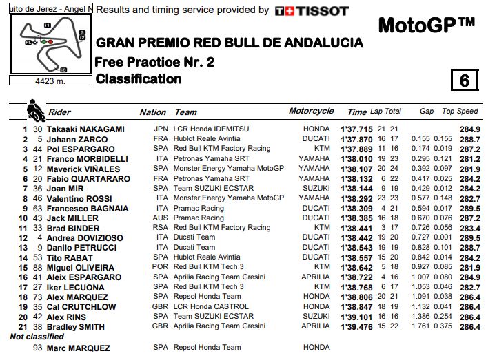 Berikut hasil Free Practice 2 (FP2) MotoGP Andalusia 2020 selengkapnya.