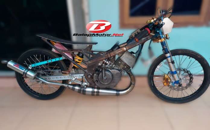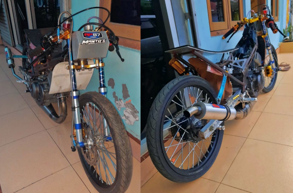 Rangka disiapkan khusus untuk balap karapan. Mesin Satria lawas coba dioprek demi hasil yang memuaskan. Hasilnya cukup menjanjikan meskipun belum setting resmi di lintasan.