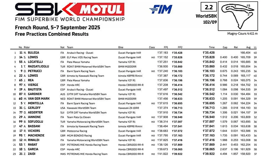 Ia tak hanya melibas waktu Toprak yang tercepat di FP1, namun juga menjadi rekor lap baru di Magny-Cours, yaitu 1 menit 35,428 detik. Itu mengungguli rekor sebelumnya yang dipegang Garret Gerloff (Kawasaki).