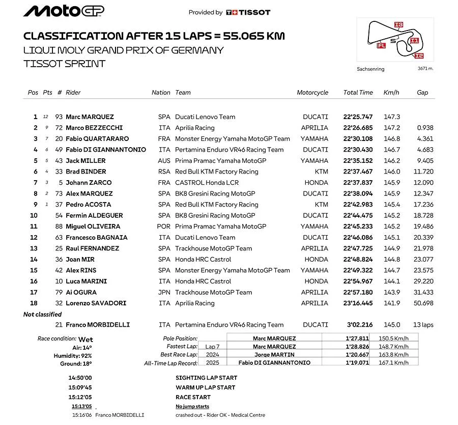Hasil Sprint Race MotoGP Sachsenring Jerman: