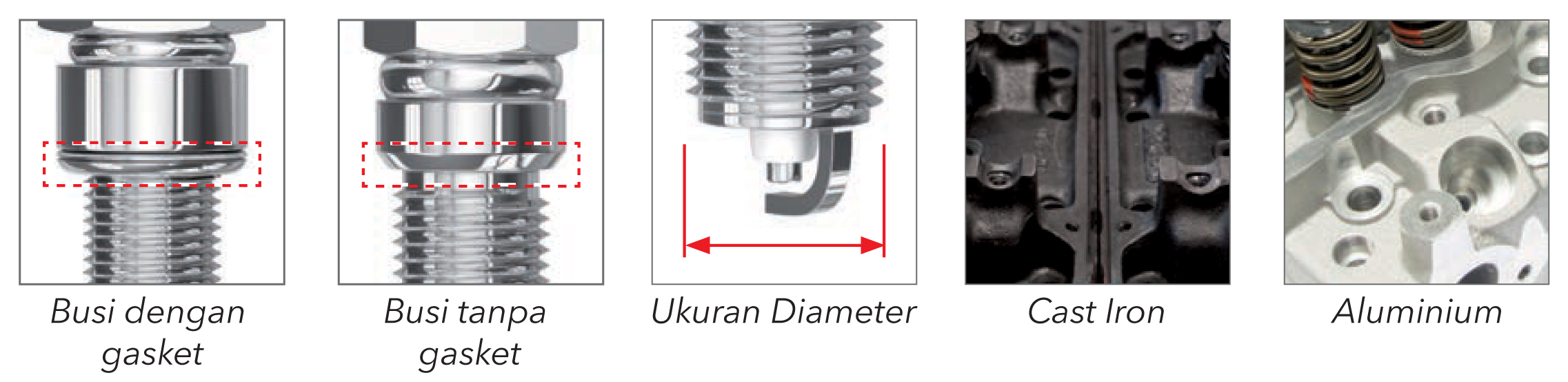 - Tipe busi yang menggunakan gasket atau tanpa gasket