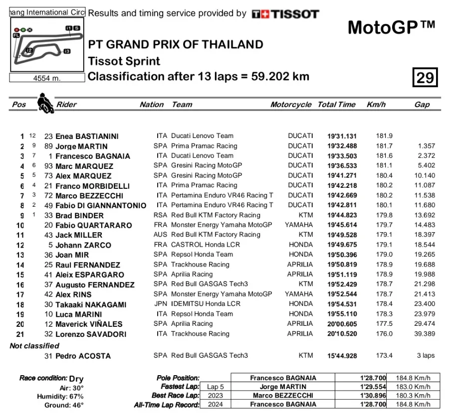 BalapMotor.Net – Francesco Bagnaia harus mengakui keunggulan Enea Bastianini dan Jorge Martin pada balapan sprint di sirkuit Chang Buriram, Thailand Sabtu sore kemarin.