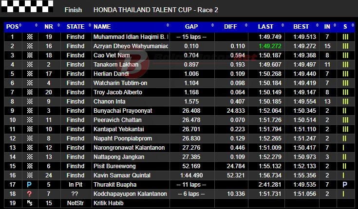 BalapMotor.Net – Azryan Dheyo Wahyu Maniadi kembali manapaki podium. Kali ini, rider binaan Astra Honda Racing School tersebut berada di podium 2 dalam perjalanan Race 2 putaran akhir Thailand Talent Cup (TTC) 2019.