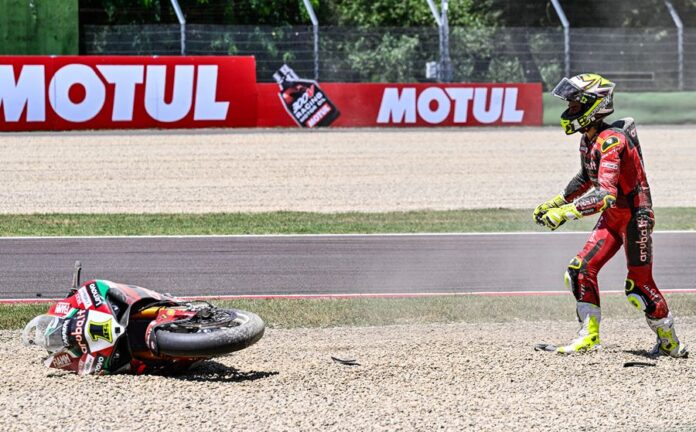 Pembalap Aruba.it Racing – Ducati ini terjatuh di awal balapan. Padahal, biasanya ia selalu tampil dengan baik dan konsisten menjadi juara. Seperti yang ia lakukan di Race 1.