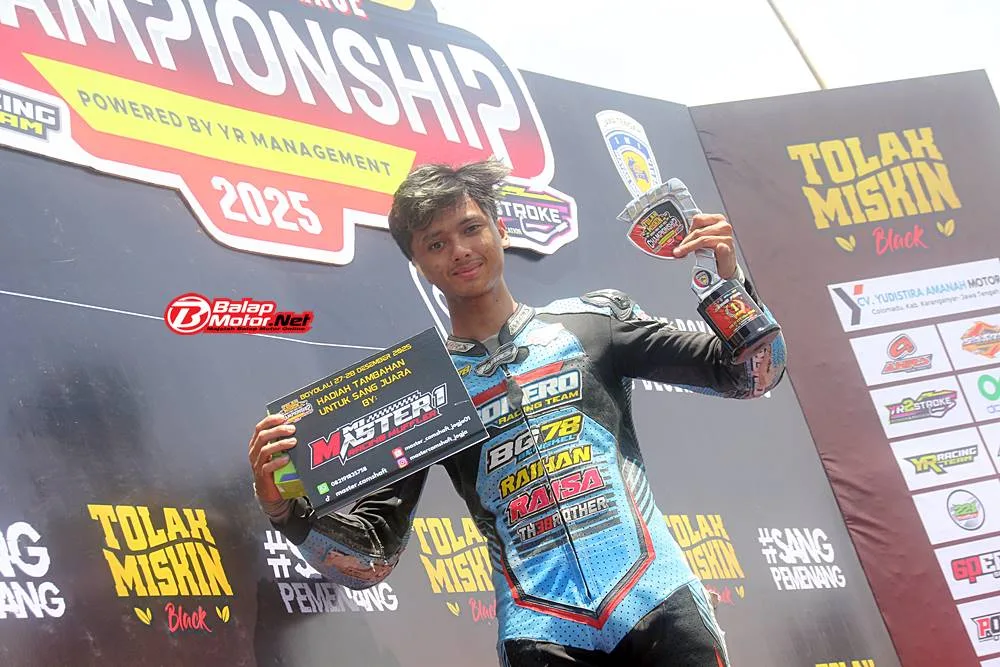 BalapMotor.Net – Febrian M Yusuf kembali menunjukkan penampilan top dipertarungan kelas Novice. Pembalap andalan Kades Muda CV APMJ tersebut amankan dua gelar dan sekali runner-up.