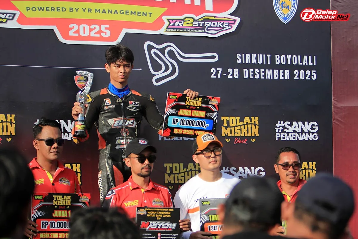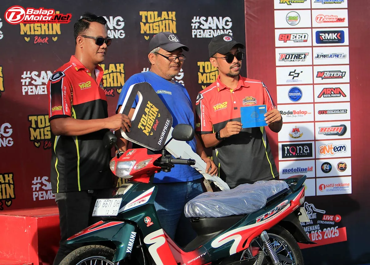 Menariknya, pada gelaran final Tolak Miskin Championship yang berlangsung pada 28–29 Desember 2025 lalu, panitia juga menyiapkan doorprize spesial berupa satu unit Yamaha F1ZR hasil restorasi. Kehadiran hadiah tersebut sukses menambah antusiasme penonton yang hadir langsung di lokasi balapan. (**)