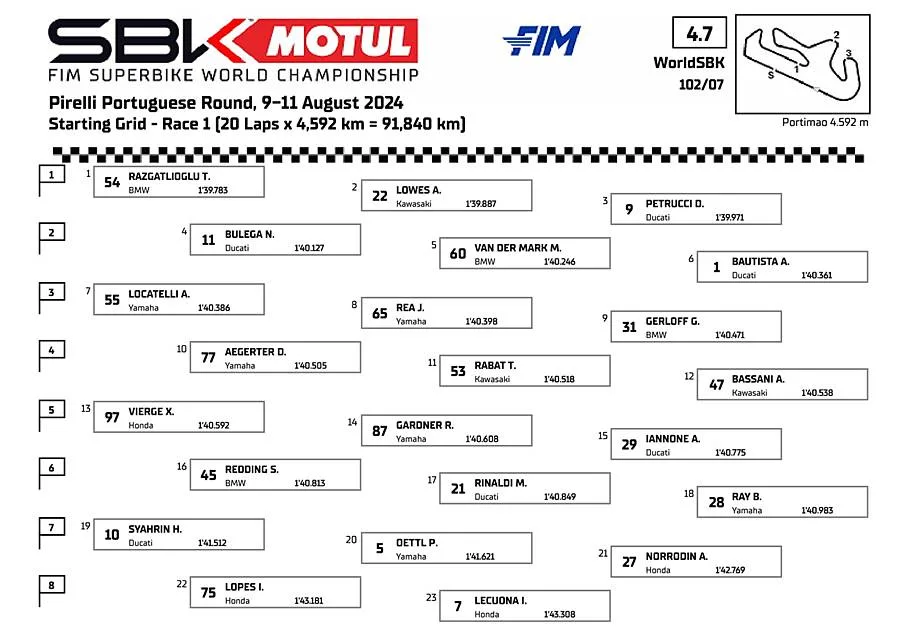 Berikut hasil Superpole WorldSBK dan posisi gird start yang akan digunakan pada Race 1 malam nanti. (***)