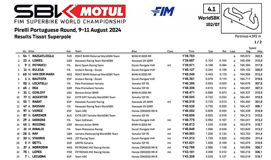 BalapMotor.Net – Toprak Razgatlioglu sukses meraih posisi teratas dalam sesi Tissot Superpole Kejuaraan Dunia Superbike yang berlangsung di Autodromo Internacional do Algarve.