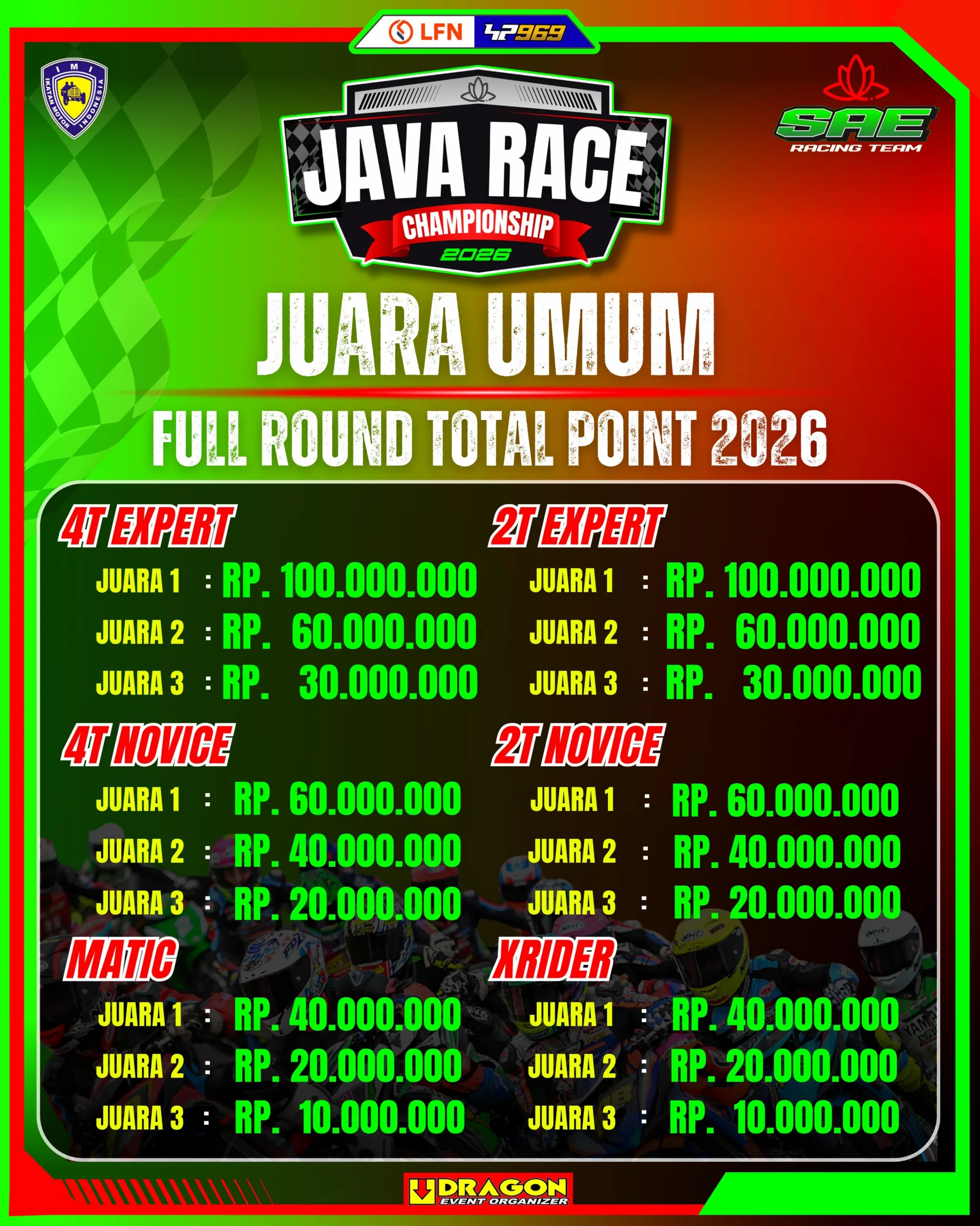 Total Hadiah 2.4 Miliar, Berikut Rincian Hadiah Gelaran Java Race Championship 2026