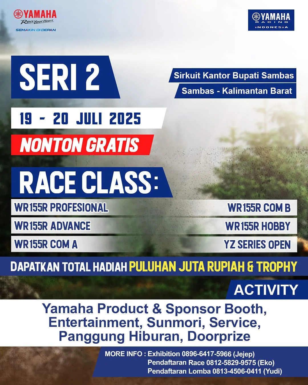 ”Setelah seri 1 Shell BLU CRU Yamaha Enduro Challenge 2025 dihelat di Jalibar Kota Batu Jawa Timur akhir Mei lalu, selanjutnya menyambangi Sambas Kalbar Juli ini. Tingginya penjualan Yamaha WR155R di Kalbar menjadi alasan kuat Shell BLU CRU Yamaha Enduro Challenge terus digelar di area itu. Banyaknya perkebunan sawit dan daerah-daerah pedalaman dengan jalan berkarakter offroad membuat masyarakat di sana membutuhkan motor tangguh seperti Yamaha WR155R. Selain itu, jarang ada kompetisi offroad sehingga mereka sangat suka dengan hadirnya Shell BLU CRU Yamaha Enduro Challenge yang berskala nasional digelar oleh pabrikan, juga dilengkapi acara hiburan. Tak heran jika tiap kali diadakan di Kalbar, selalu dipenuhi banyak pengunjung dan jumlah peserta kompetisi melimpah. Event di Sambas ini bakal dihadiri oleh para pecinta Yamaha dan balapan pada umumnya yang datang dari Sambas, Singkawang dan Bengkayang,” ungkap Johannes B.M.Siahaan, Assistant General Manager CS Division PT. Yamaha Indonesia Motor Manufacturing (YIMM).