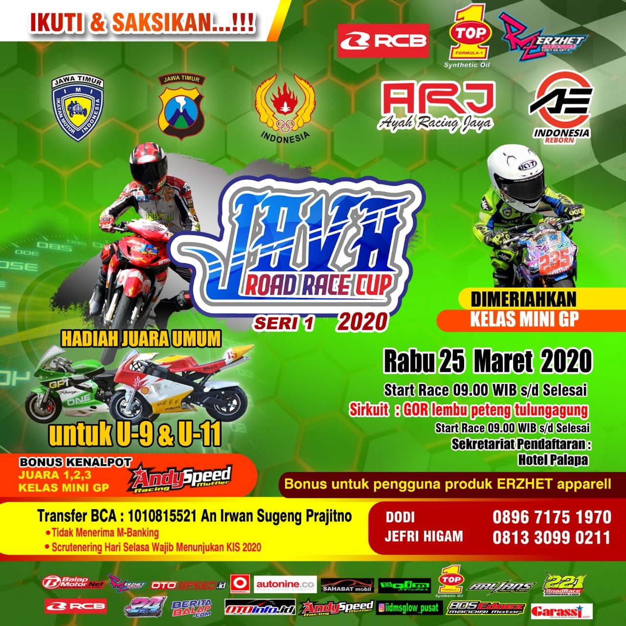 Transfer BCA: 1010815521 a.n. Irwan Sugeng Prajitno. Maaf tidak menerima M-Banking (bukti transfer harap dibawa)