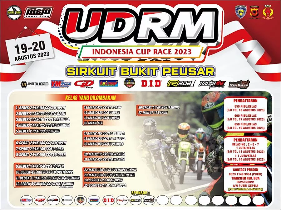 BalapMotor.Net – UDRM Indonesia Cup Race putaran kedua yang akan berlangsung di sirkuit Bukit Peusar Tasikmalaya akhir pekan ini siap menyuguhkan pertarungan menarik kelas-kelas 2 tak.