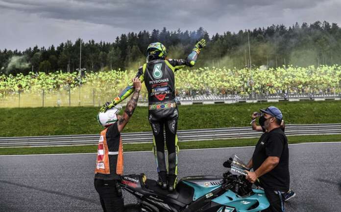 Disisi lain, Rossi mengaku sangat emosional dengan dukungan luar biasa dari sirkuit Red Bull Ring. “Ini luar biasa dengan banyak penggemar di trek dan sangat banyak dari mereka dengan kaus dan topi kuning. Putaran setelah melewati garis finis sangat emosional, sirkuit juga berterima kasih kepada kami dengan helikopter. Ada juga spanduk besar di tribun KTM yang bagus. Sangat emosional,” tegas Rossi.