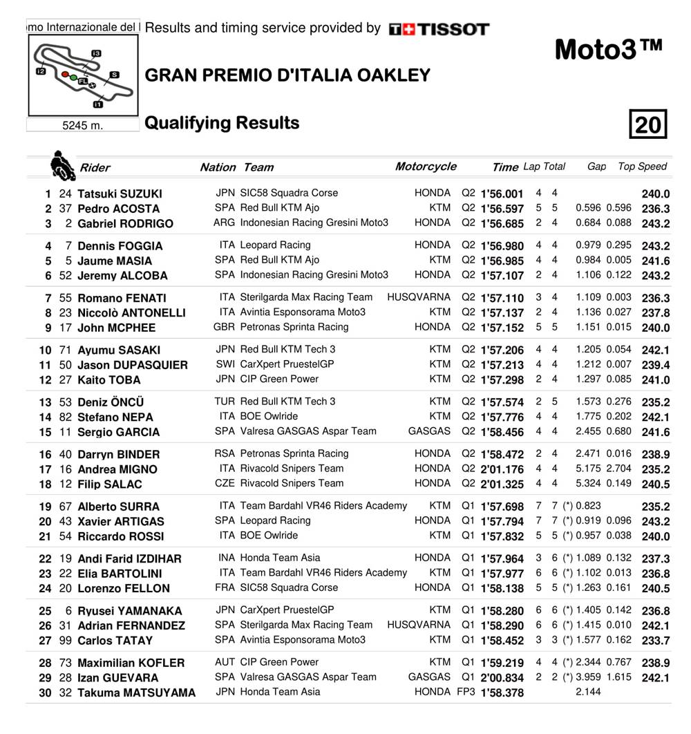 BalapMotor.Net – Dalam sesi kualifikasi Moto3 di sirkuit Mugello, terjadi insiden yang cukup parah. Kejadian itu bermula saat Jason Dupasquier jatuh setelah tikungan 9, namun naas Ayumu Sasaki dan Jeremy Alcoba tidak bisa menghindar dan terjadilah tabrakan.